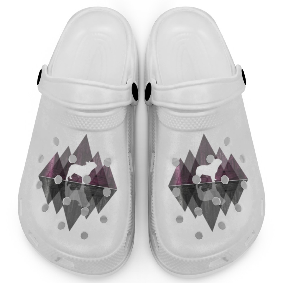 The product unique design you searched for is French Bulldog abstract - Geometry Dog Triangle Clogs For Kids WHITE belong theme Clogs at Printblur