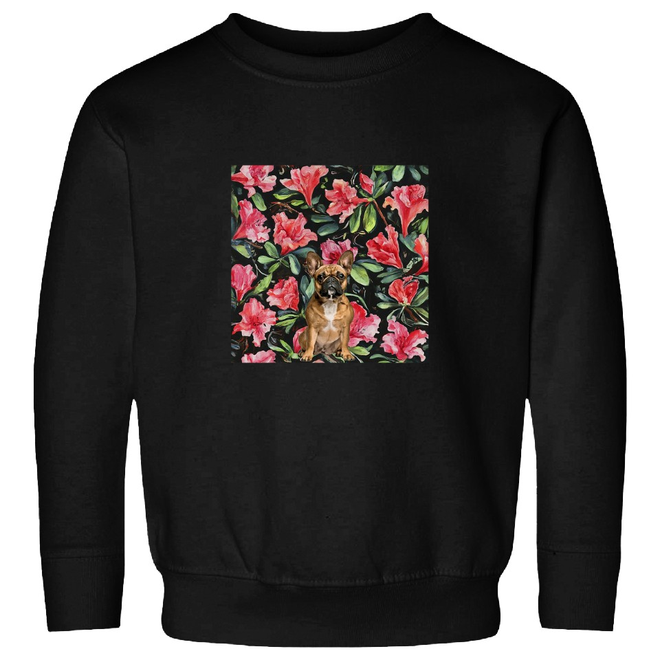 You're taking a peek at the product French Bulldog Azaleas Pink Green vintages Plant Pattern Sweatshirts For Kids Black belong theme Sweatshirts at Printblur