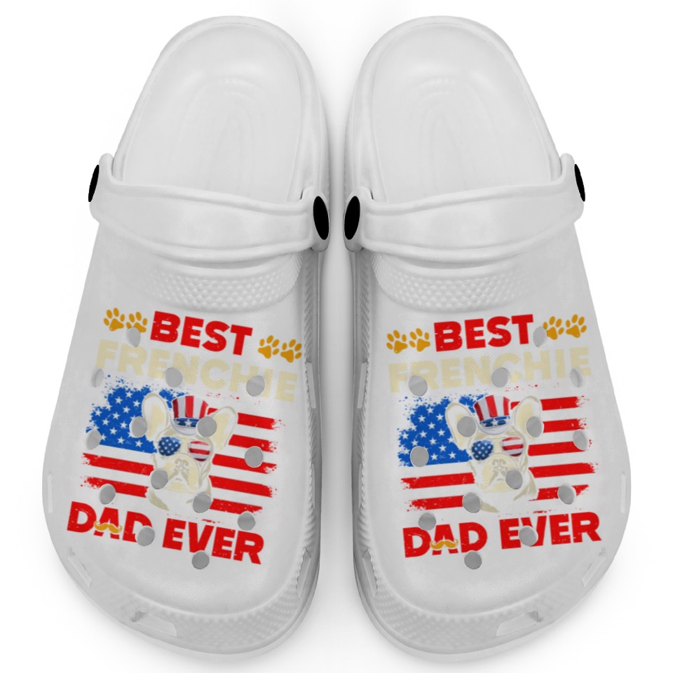 Own fascinating French Bulldog BEST FRENCHIE DAD EVER USA Clogs or see more Clogs products now from Printblur shop to enjoy your shopping time!