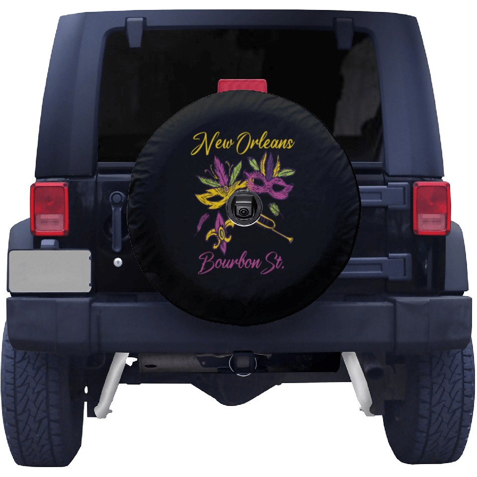 The item hot trend you're looking at is French New Orleans Mardi Gras Souvenir Bourbon Str Spare Tire Covers For Black belong theme Spare Tire Covers at Printblur