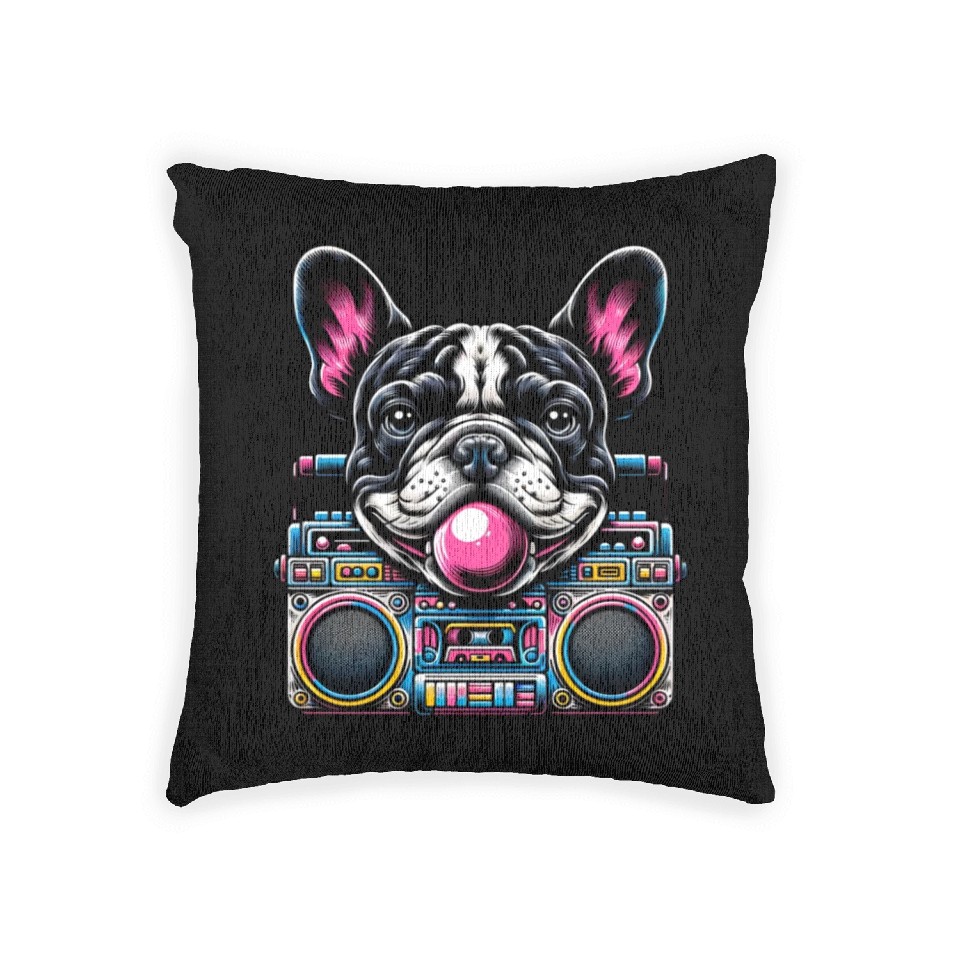 Own fascinating Frenchie Beats: French Bulldog with Music Boom Box Woven Pillows or see more Woven Pillows products now from Printblur shop to enjoy your shopping time!