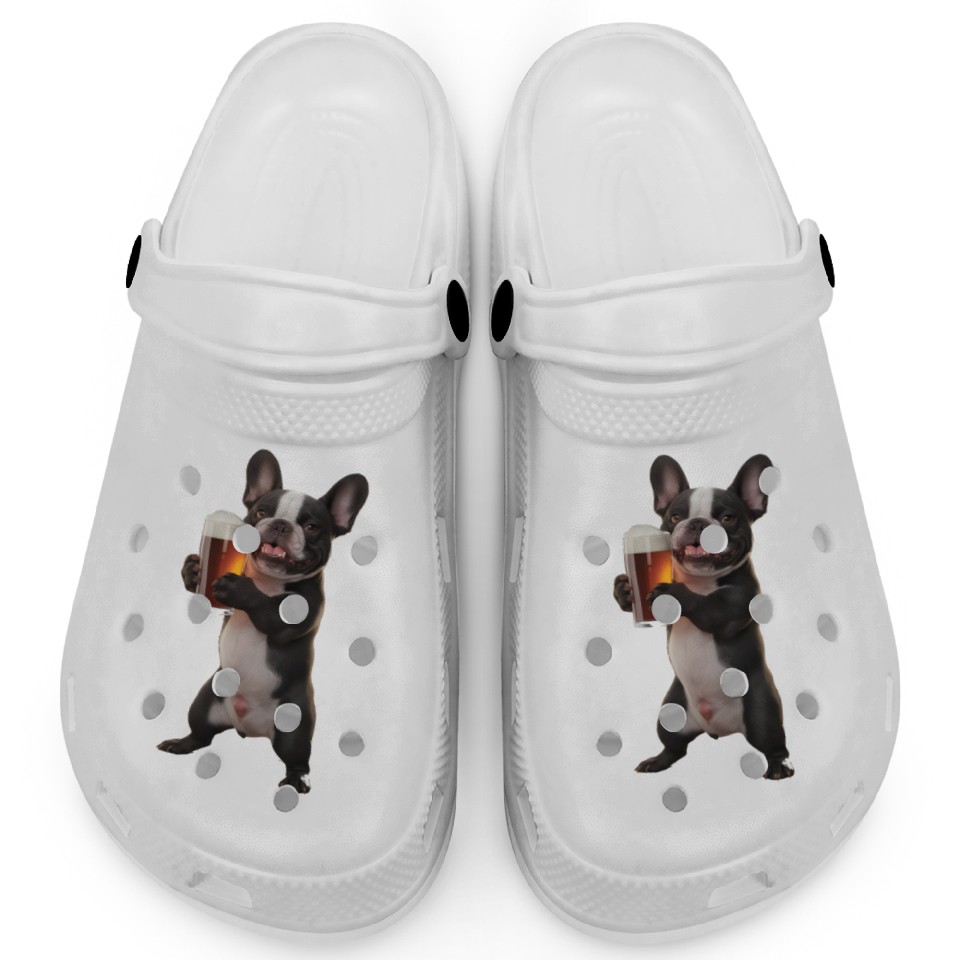 Frenchie Drinking Beer Realistic Clogs