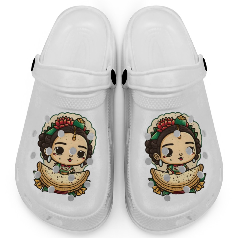 You are contemplating one of the best-selling products Frida Kahlo & Tacos Cinco De Mayo Mexican Fiesta Clogs For Kids WHITE belong theme Clogs at Printblur