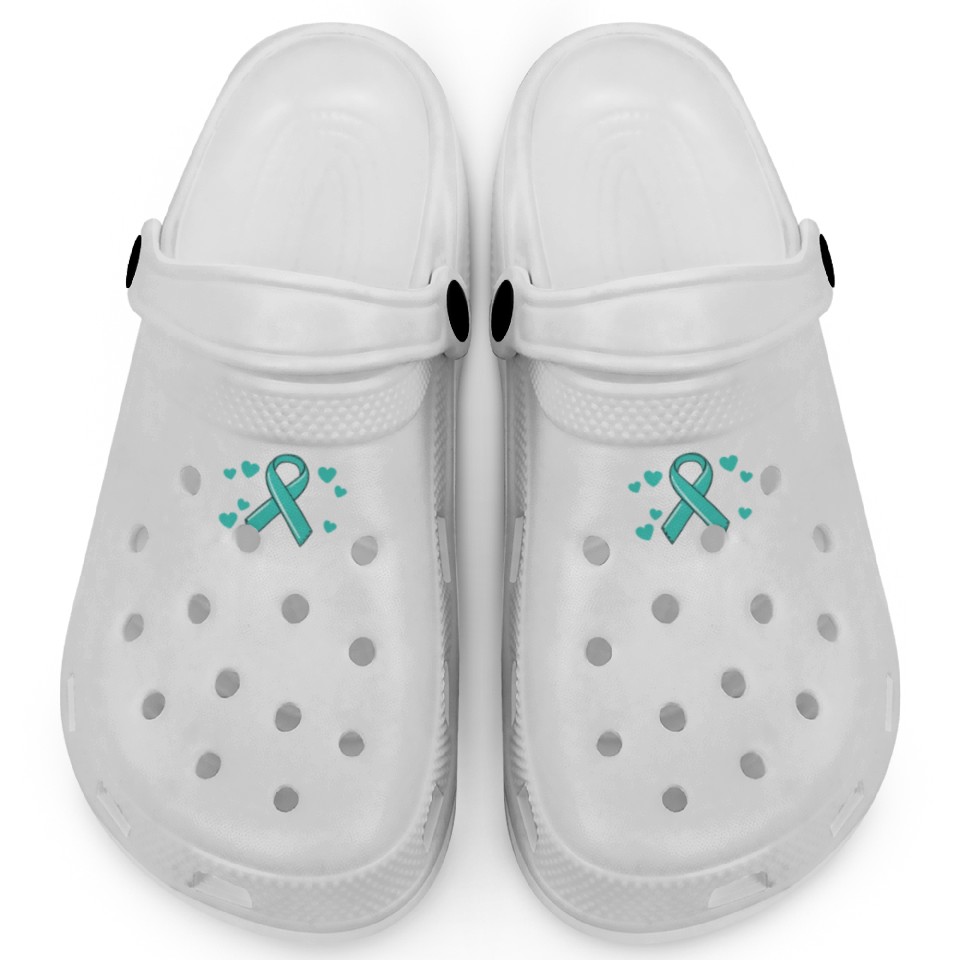 You are shopping for a stunning and trendy product Friend Of A Warrior Support Team Ovarian Cancer Clogs For Kids WHITE belong theme Clogs at Printblur