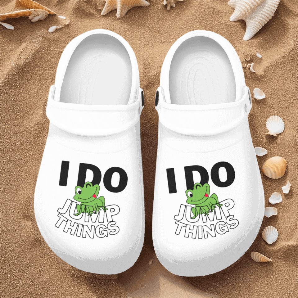 The product unique design you searched for is Frog Do The Jump Thing Nurse Clogs For Men WHITE belong theme Nurse Clogs at Printblur