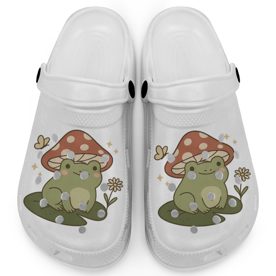 The item hot trend you're looking at is Frog Mushroom Cottagecore Clogs For Kids WHITE belong theme Clogs at Printblur