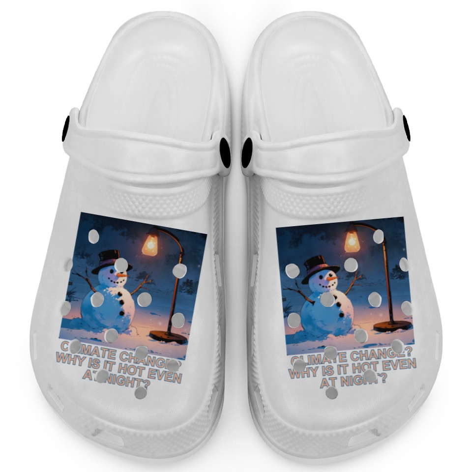 You're looking at the eye-catching product Frosty Snowman Under Street Lights Christmas Clogs For Kids WHITE belong theme Clogs at Printblur
