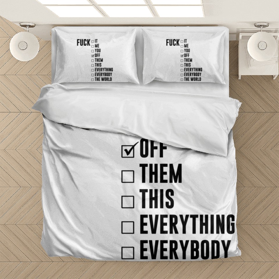 You're taking a peek at the product Fuck Off Checklist Bedding Sets For WHITE belong theme Bedding Sets at Printblur