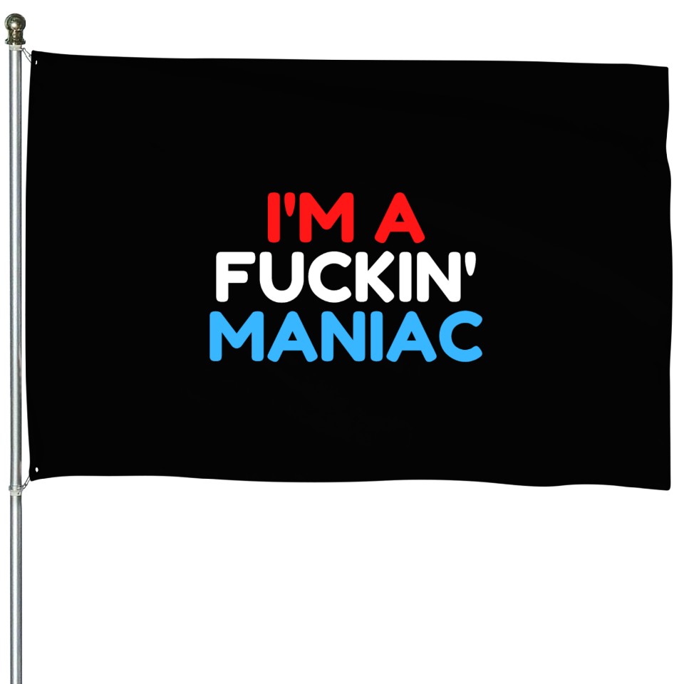 Own fascinating Fuckin' Maniac (Red, White and Blue version) House Flags or see more House Flags products now from Printblur shop to enjoy your shopping time!