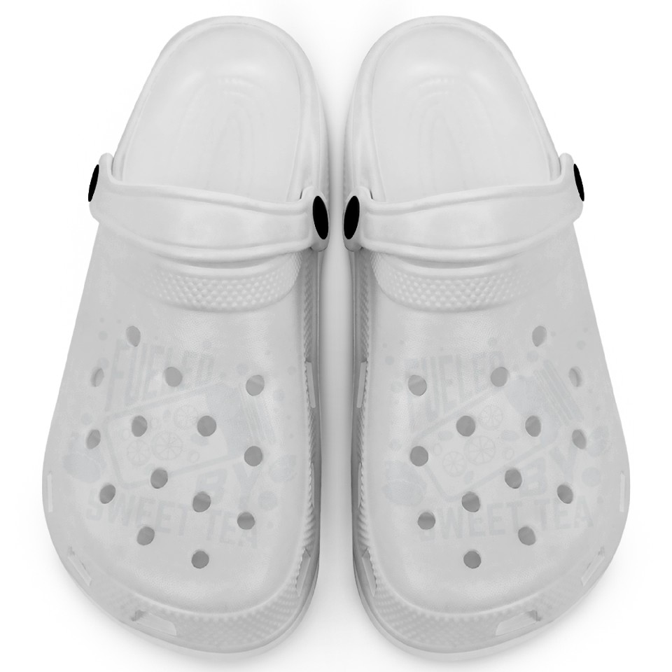 The item hot trend you're looking at is Fueled By Sweet Tea I Funny Southern Country Clogs For Kids WHITE belong theme Clogs at Printblur