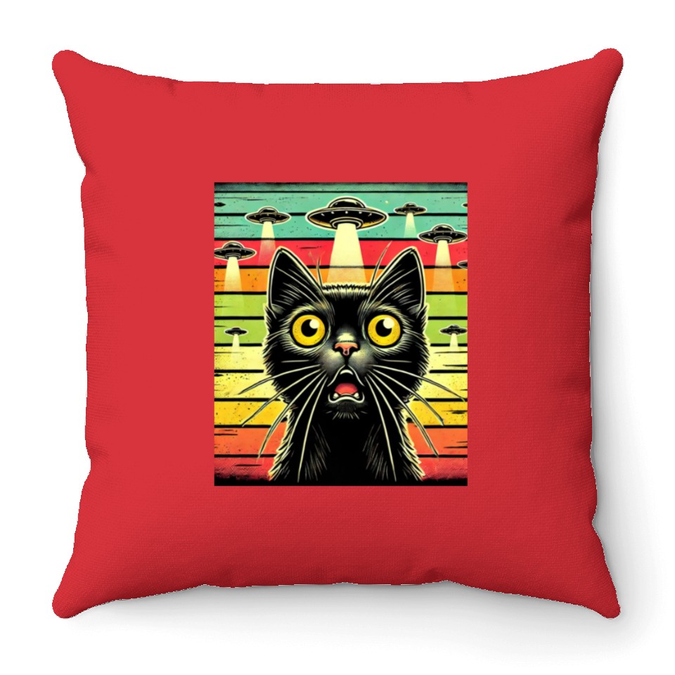 Shop for attractive Fun Cat sunset Galaxy Cat Spaceship Alien Cat UFOs Throw Pillows or see more Throw Pillows products on https://printblur.com right now!