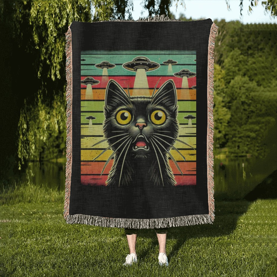 Buy eye-catching Fun Cat sunset Galaxy Cat Spaceship Alien Cat UFOs Woven Blankets or see more Woven Blankets products at Printblur shop now to explore many surprises from our shop!