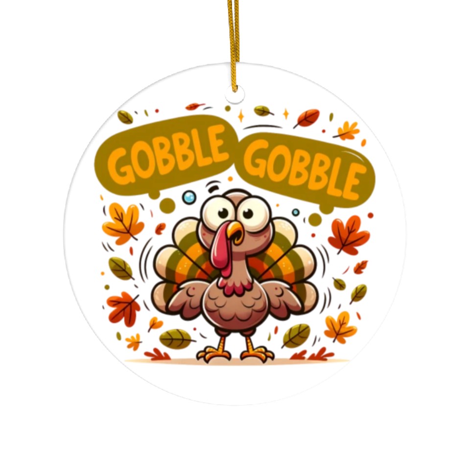 The product unique design you searched for is Fun Turkey Gobble Gobble for a Joyful Thanksgiving Ceramic Ornaments For WHITE belong theme Ceramic Ornaments at Printblur