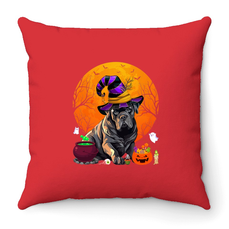 Buy eye-catching Funny Cane Corso Dog Witch Halloween Dog Lover Throw Pillows or see more Throw Pillows products at Printblur shop now to explore many surprises from our shop!