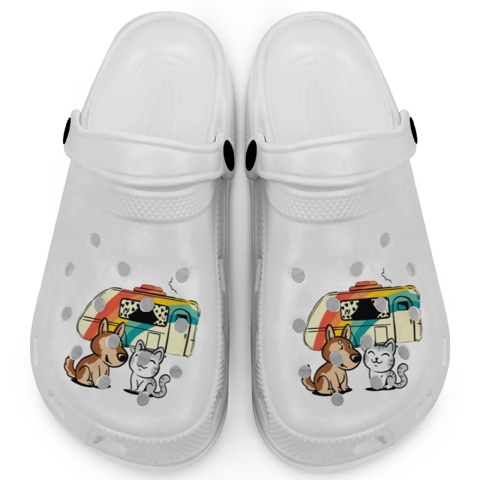 Funny Cat and Dog Camping with Friends Caravan Clogs