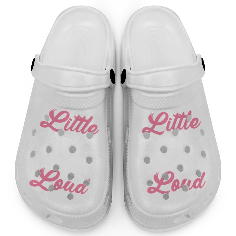 The product unique design you searched for is Funny Cheerleading Cheerleader Cheer Squad Little Clogs For Kids WHITE belong theme Clogs at Printblur