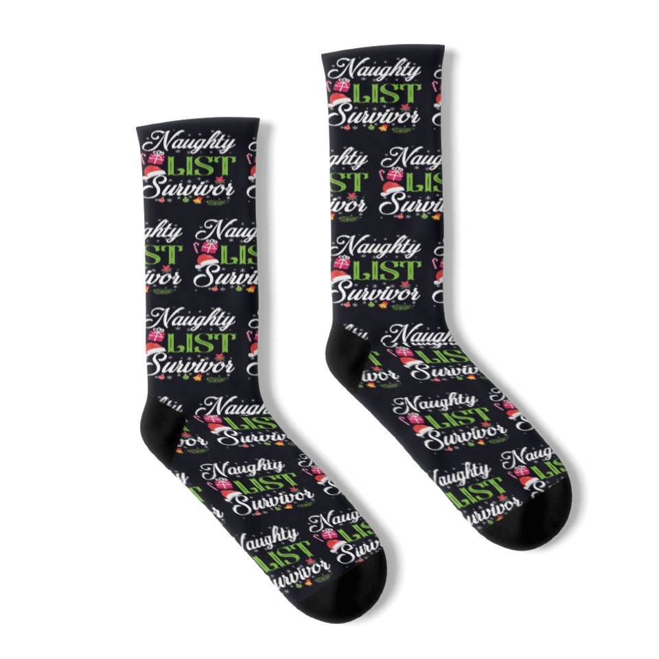 Buy stunning Funny Christmas Naughty List Survivor Socks or see more Socks products at Printblur right now to receive many amazing discounts!