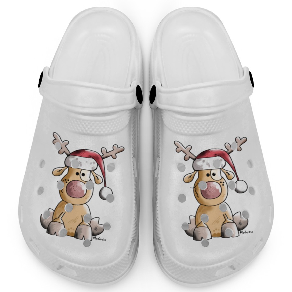 The product unique design you searched for is Funny Christmas Reindeer Clogs For Kids WHITE belong theme Clogs at Printblur