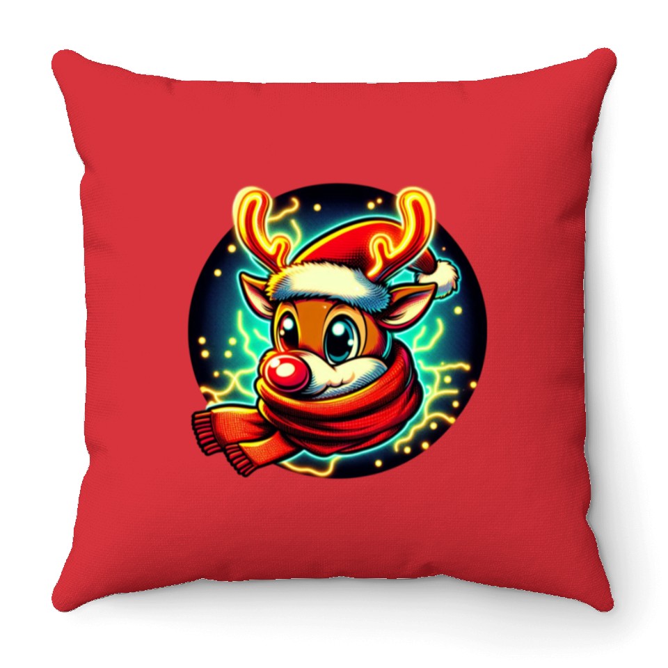 Buy eye-catching Funny Christmas Rudolph: Glowing Neon Santa Scarf Throw Pillows or see more Throw Pillows products at Printblur shop now to explore many surprises from our shop!