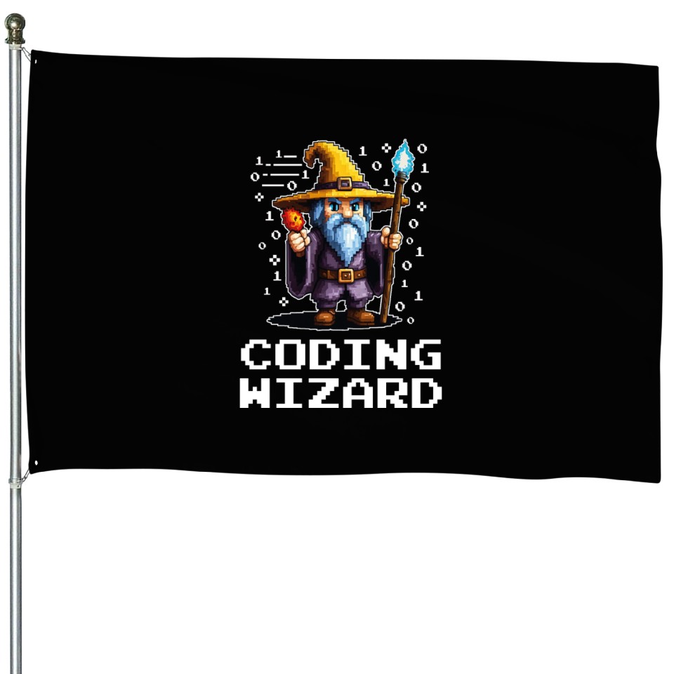 The product unique design you searched for is Funny Coding Wizard Pixel Fantasy Coder Magic House Flags For Black belong theme House Flags at Printblur