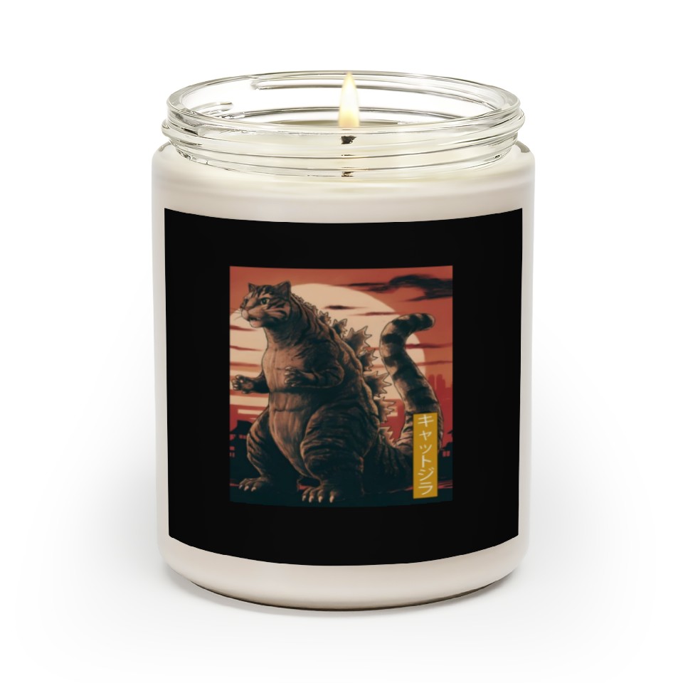 The product unique design you searched for is Funny Cute Cat Art Japanese Sunset Retro Catzilla Scented Candles For Black belong theme Scented Candles at Printblur
