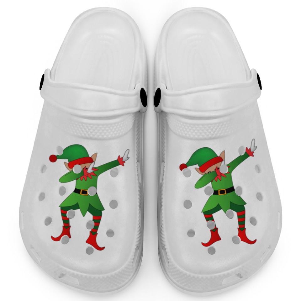 You are seeing a unique and impressive product Funny Dabbing Christmas Elf Clogs Santa's Helper D For Kids WHITE belong theme Clogs at Printblur