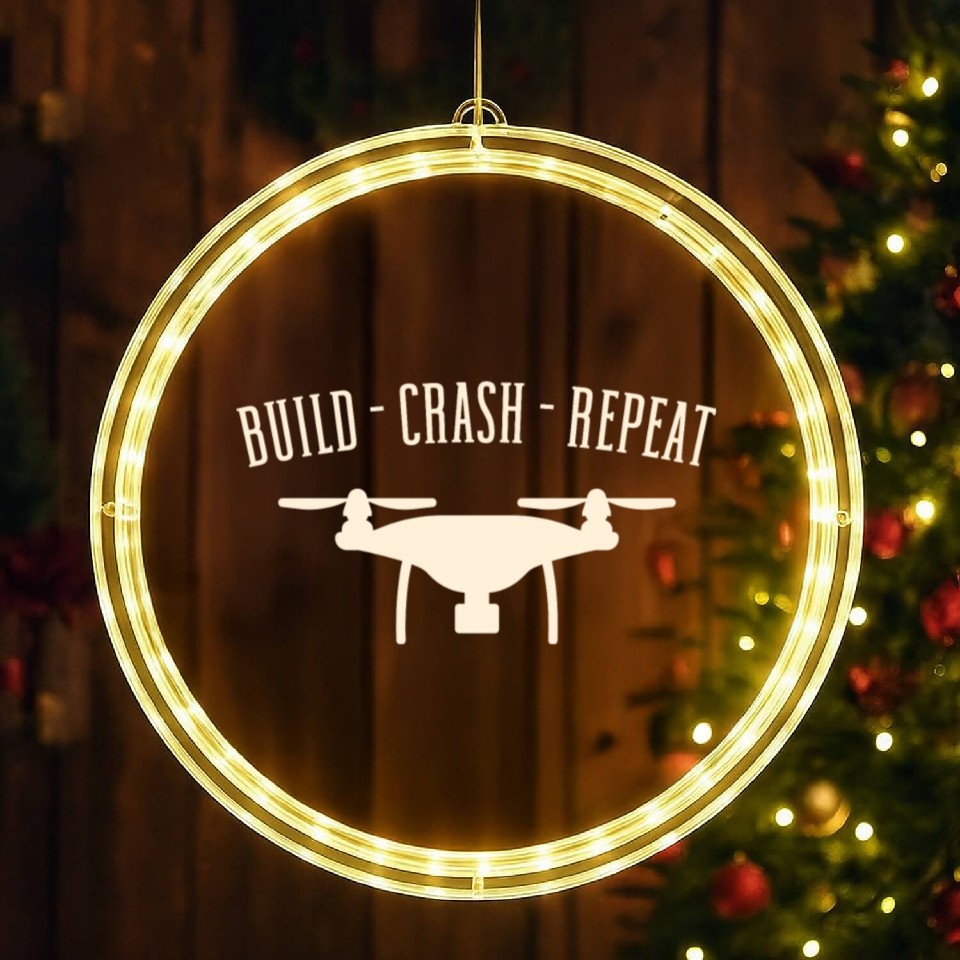Buy eye-catching Funny Drone Pilot Build Crash Repeat Quadrocopter LED Christmas Window Lights or see more LED Christmas Window Lights products at Printblur shop now to explore many surprises from our shop!