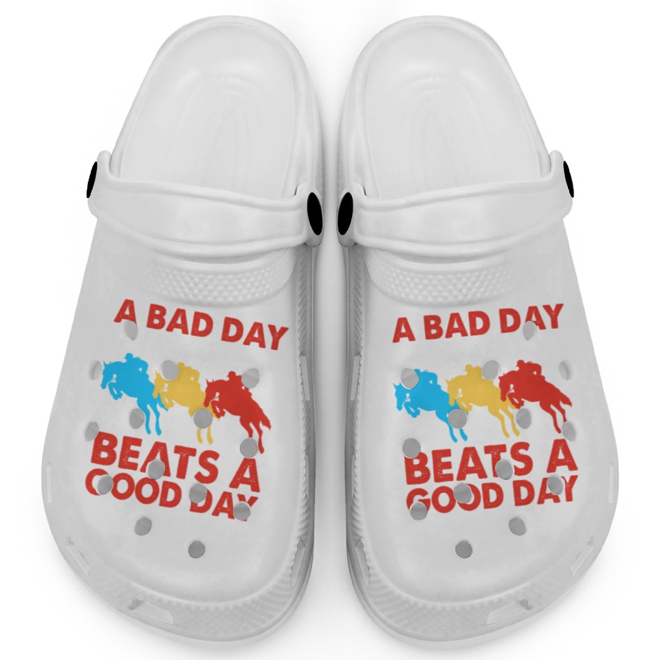 You are shopping for a stunning and trendy product Funny Equestrian Horse Riding Show Jumping Clogs For Kids WHITE belong theme Clogs at Printblur