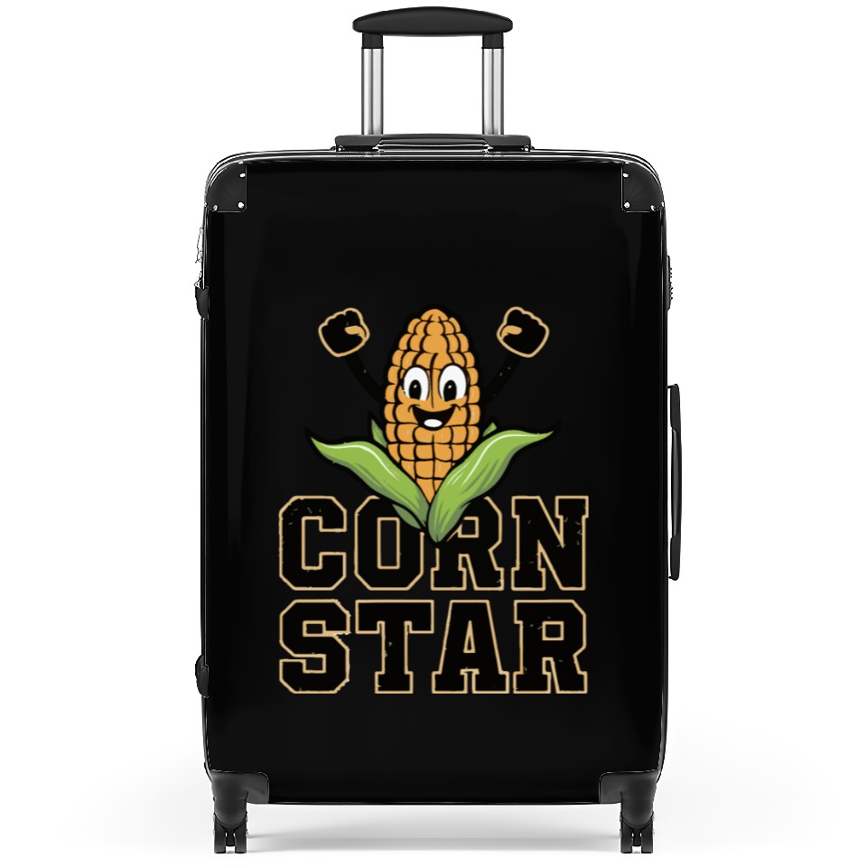 You are viewing an exclusive and elegant product Funny Farm Food Suitcases Corny Cob Farmer Corn Star For Black belong theme Suitcases at Printblur