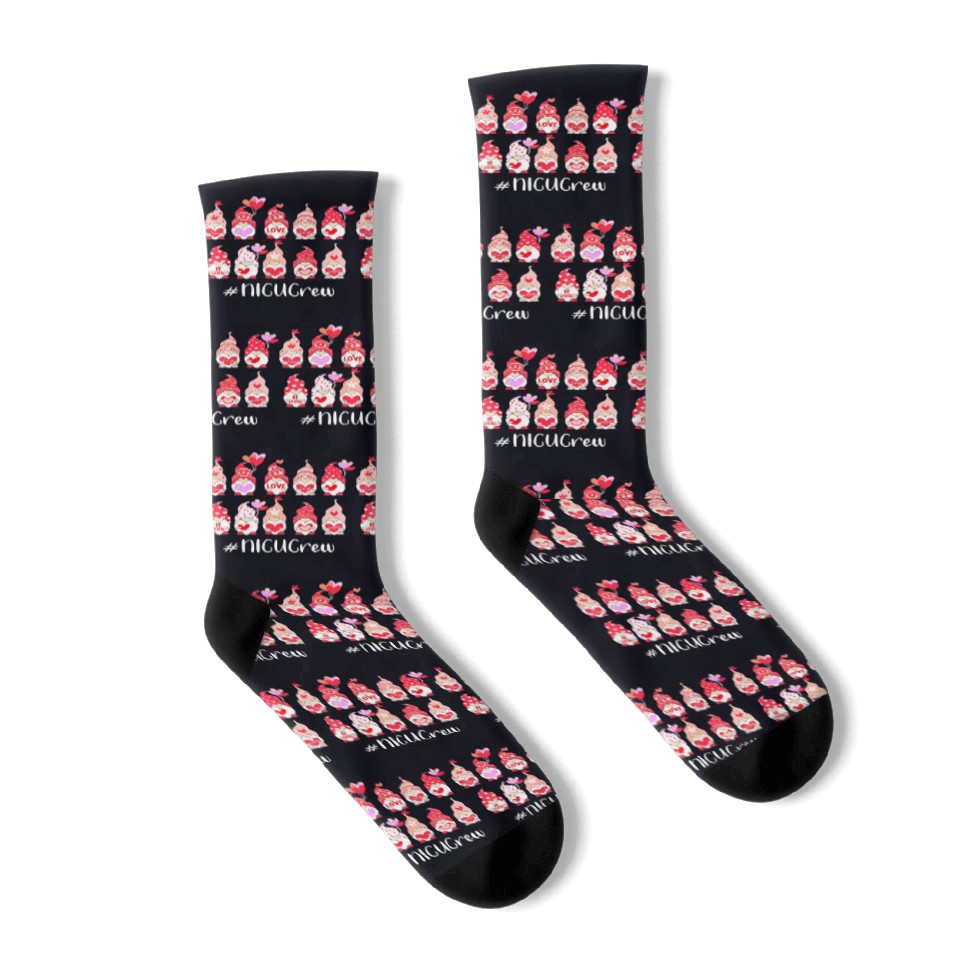 You are viewing an exclusive and elegant product Funny Gnome With Hearts NICU Crew Valentine s Day Socks For Black belong theme Socks at Printblur