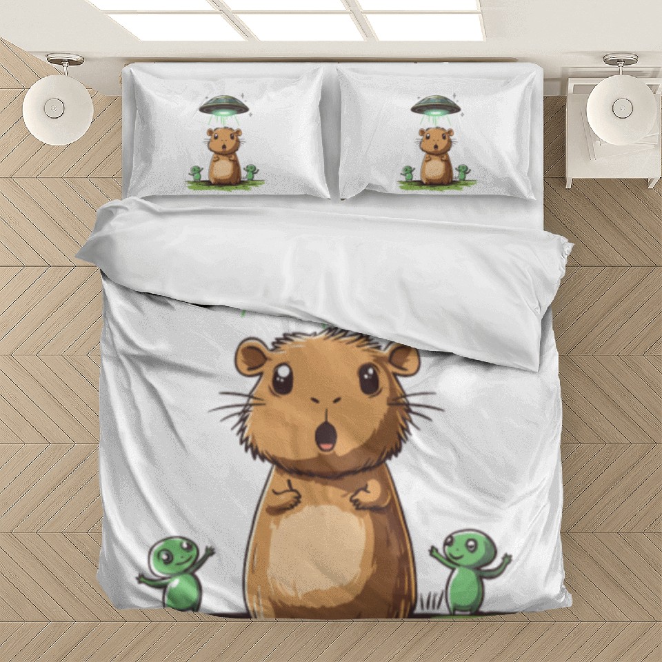 You're searching for a one-of-a-kind product Funny Graphic Bedding Sets Capybara Selfie With Ufos Weird For WHITE belong theme Bedding Sets at Printblur