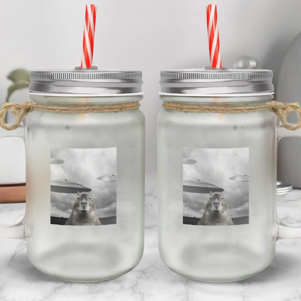 Shop for impressive Funny Graphic Capybara Selfie with UFOs Weird Mason Jar Cups or see more Mason Jar Cups products right now on Printblur to enjoy your happiness!