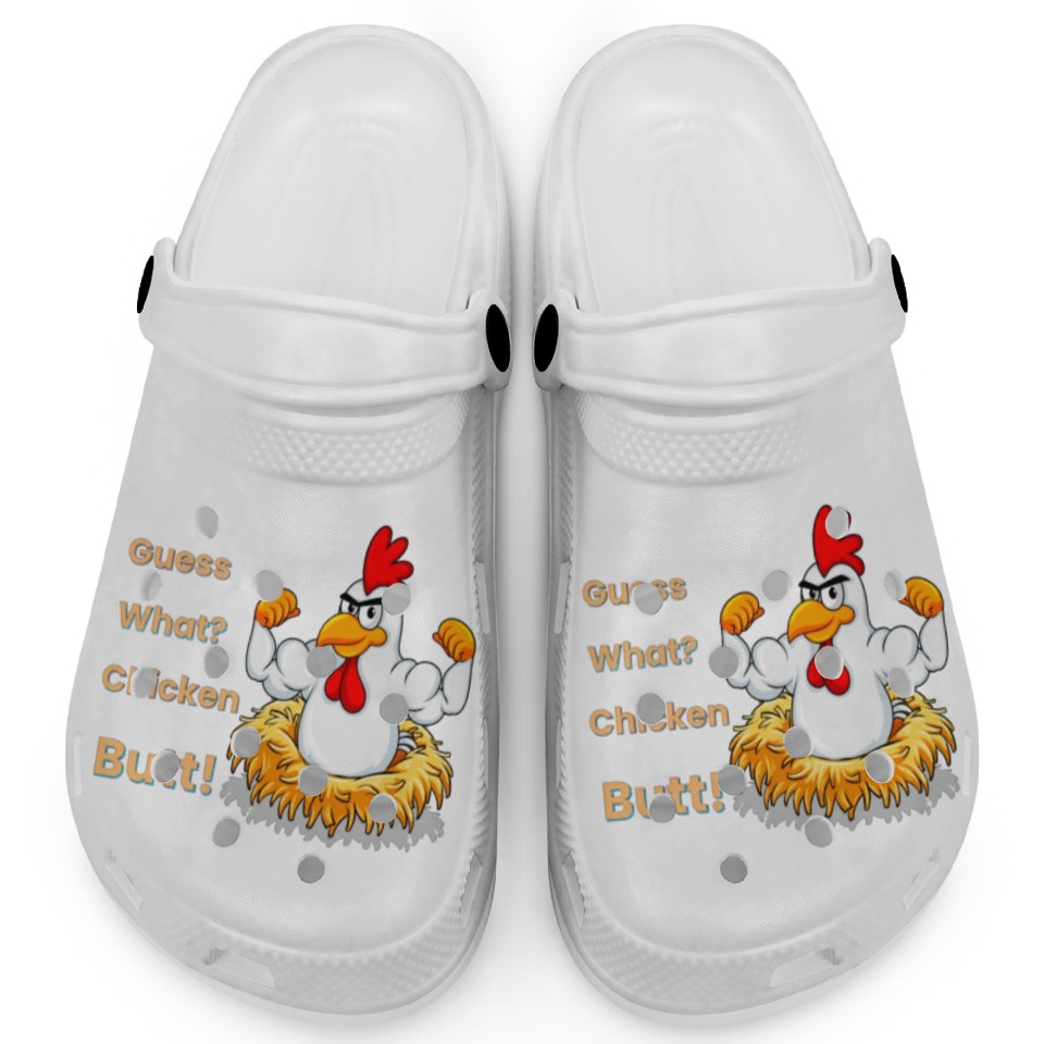 Buy eye-catching Funny Guess What? Chicken Butt! White Design Clogs or see more Clogs products at Printblur shop now to explore many surprises from our shop!