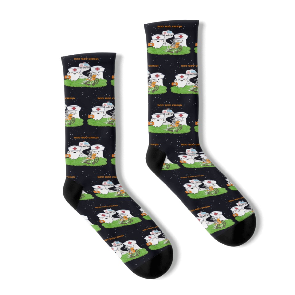 Own fascinating Funny Halloween Boo Boo Crew Ghost Nurse Socks or see more Socks products now from Printblur shop to enjoy your shopping time!