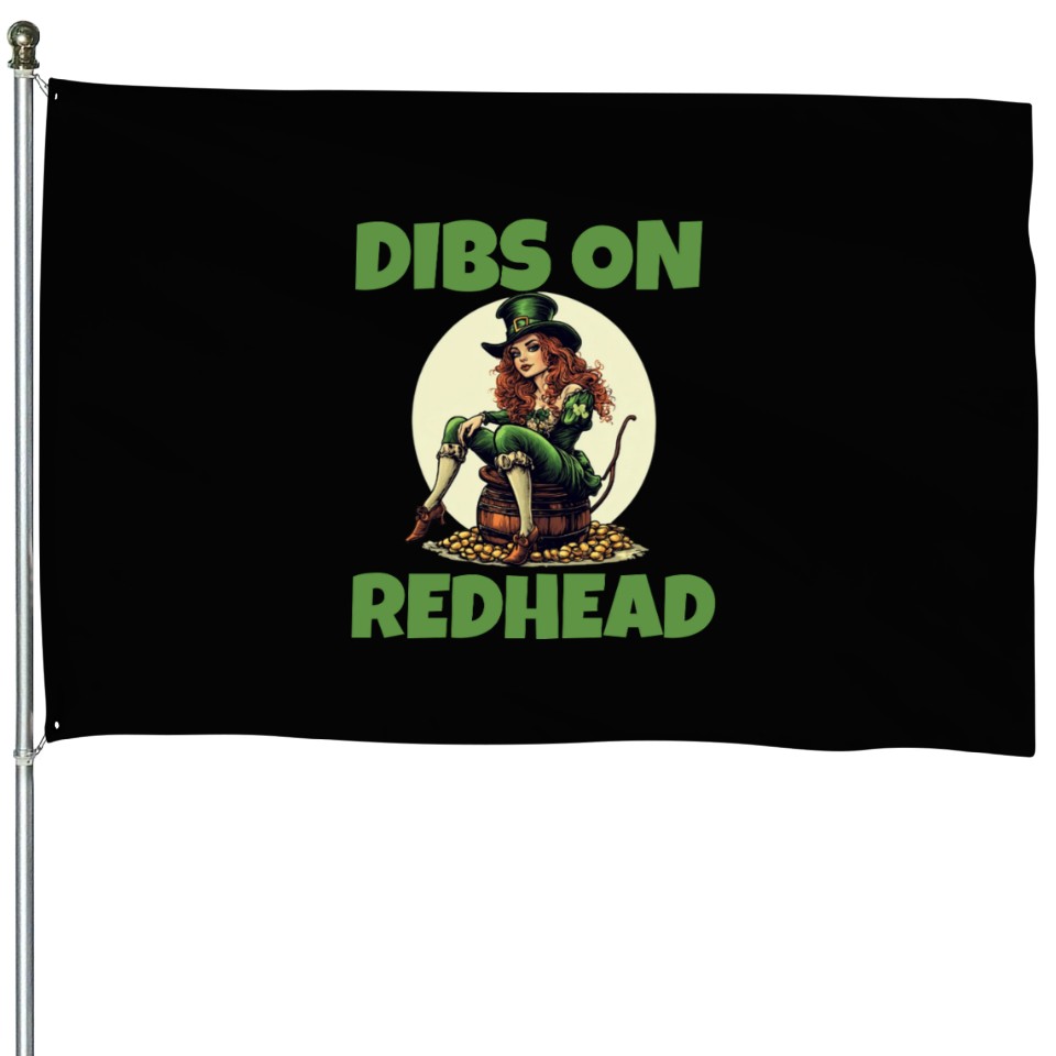 You are seeing a unique and impressive product Funny Irish St Patricks Shamrock Dibs On Redhead House Flags For Black belong theme House Flags at Printblur