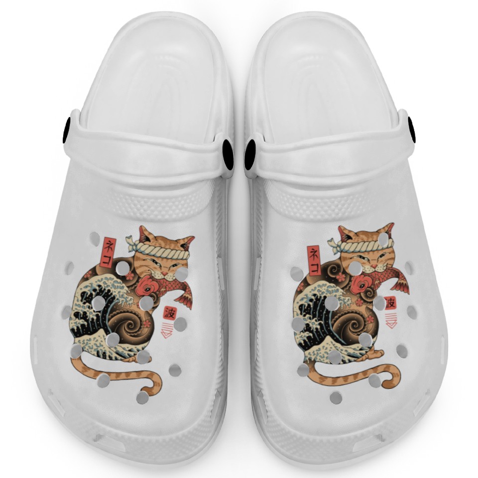 Funny Japanese Catana Wave Eating Koi Fish Clogs