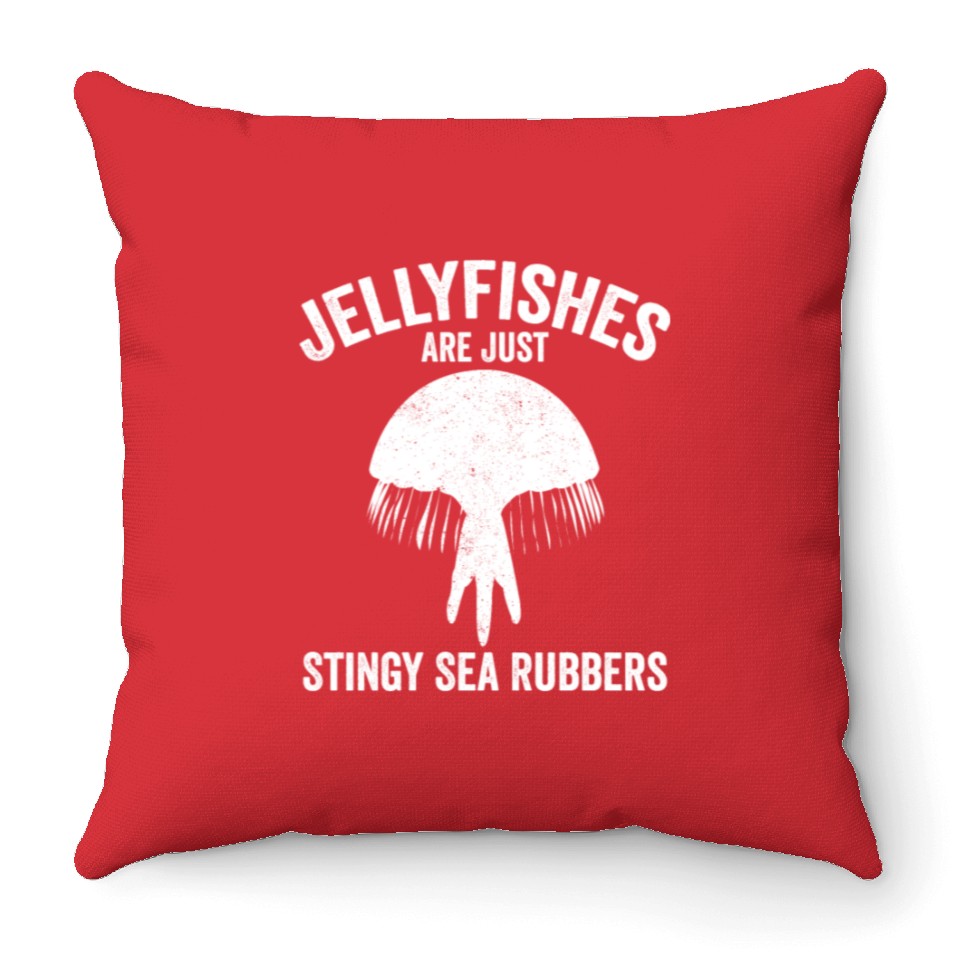 Own fascinating Funny Jellyfish Are Just Stingy Sea Rubbers Throw Pillows or see more Throw Pillows products now from Printblur shop to enjoy your shopping time!