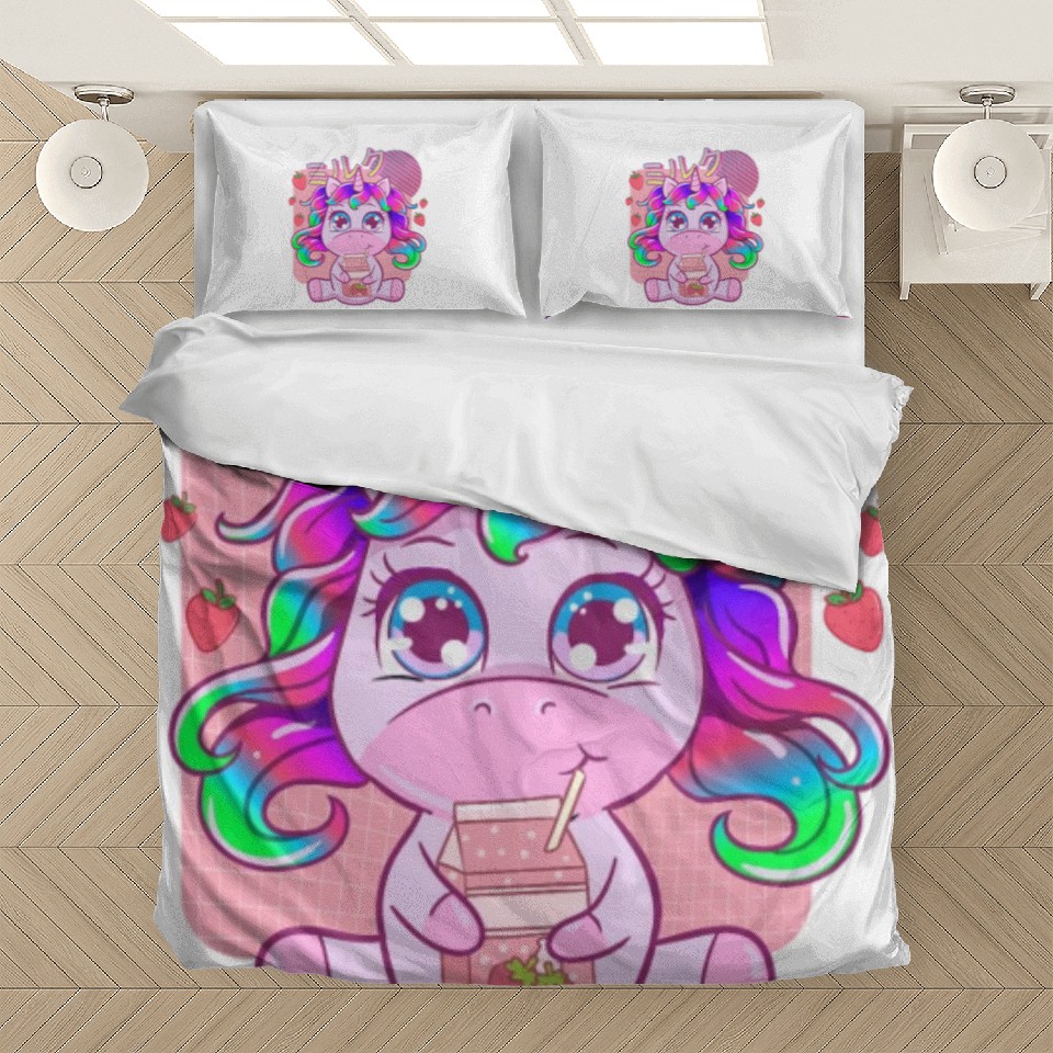Own fascinating Funny Kawaii Unicorn Strawberry Milk Shake Bedding Sets or see more Bedding Sets products now from Printblur shop to enjoy your shopping time!
