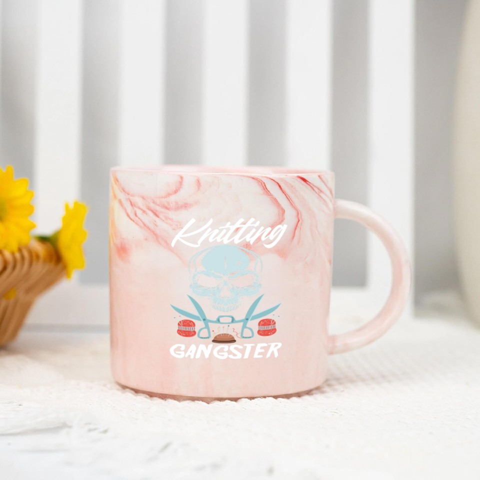 You are shopping for a stunning and trendy product Funny Knitting Gangster Quote Knitting Lover Marble Mugs For Pink belong theme Marble Mugs at Printblur