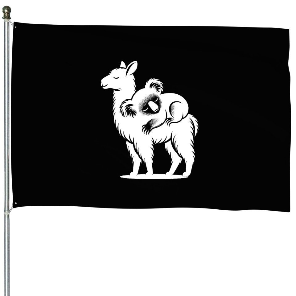 Shop for attractive Funny Llama With A Chilling Koala On Its Back House Flags or see more House Flags products on https://printblur.com right now!