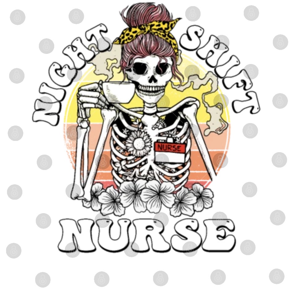 You're taking a peek at the product Funny Night Shift Nurse Skeleton Halloween RN Digital Files For WHITE belong theme Digital Files at Printblur