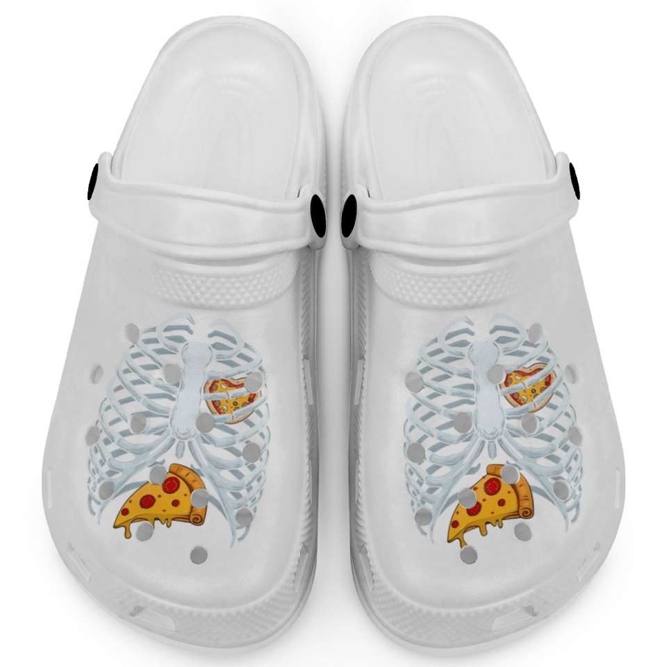 Funny PIzza Skeleton Rib Cage Halloween Costume Clogs