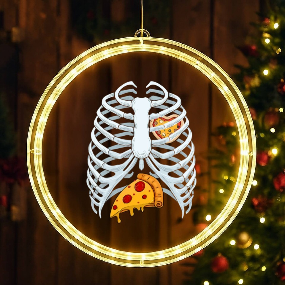 Funny PIzza Skeleton Rib Cage Halloween Costume LED Christmas Window Lights