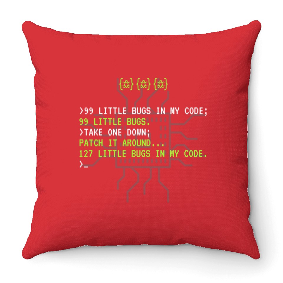 The product unique design you searched for is Funny Programmer Coding Debugger Hacker Computer Throw Pillows For Cover Only Red belong theme Throw Pillows at Printblur