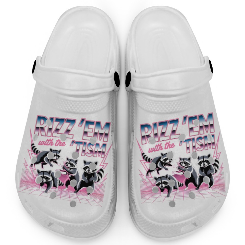 Buy eye-catching Funny Raccoon Clogs Rizz Em With The Tism or see more Clogs products at Printblur shop now to explore many surprises from our shop!