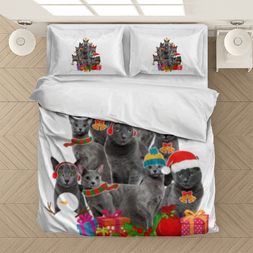 You're searching for a one-of-a-kind product Funny Russian Blue Christmas Tree Pet Cat Lover Bedding Sets For WHITE belong theme Bedding Sets at Printblur