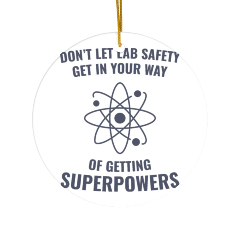 You're taking a peek at the product Funny Scientist Chemistry Lab Safety Superpowers Ceramic Ornaments For WHITE belong theme Ceramic Ornaments at Printblur