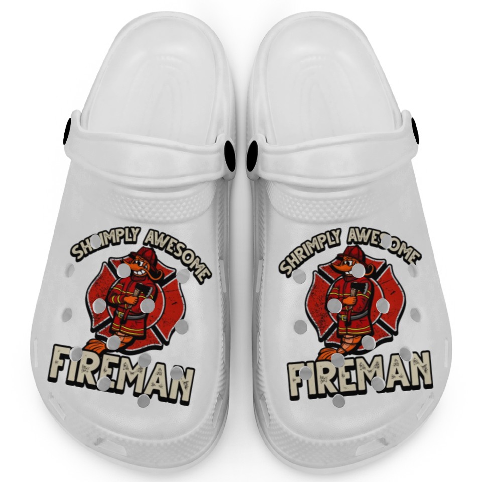 You're looking at the eye-catching product Funny Shrimp/Prawn Pun. Shrimply Awesome Fireman Clogs For Kids WHITE belong theme Clogs at Printblur