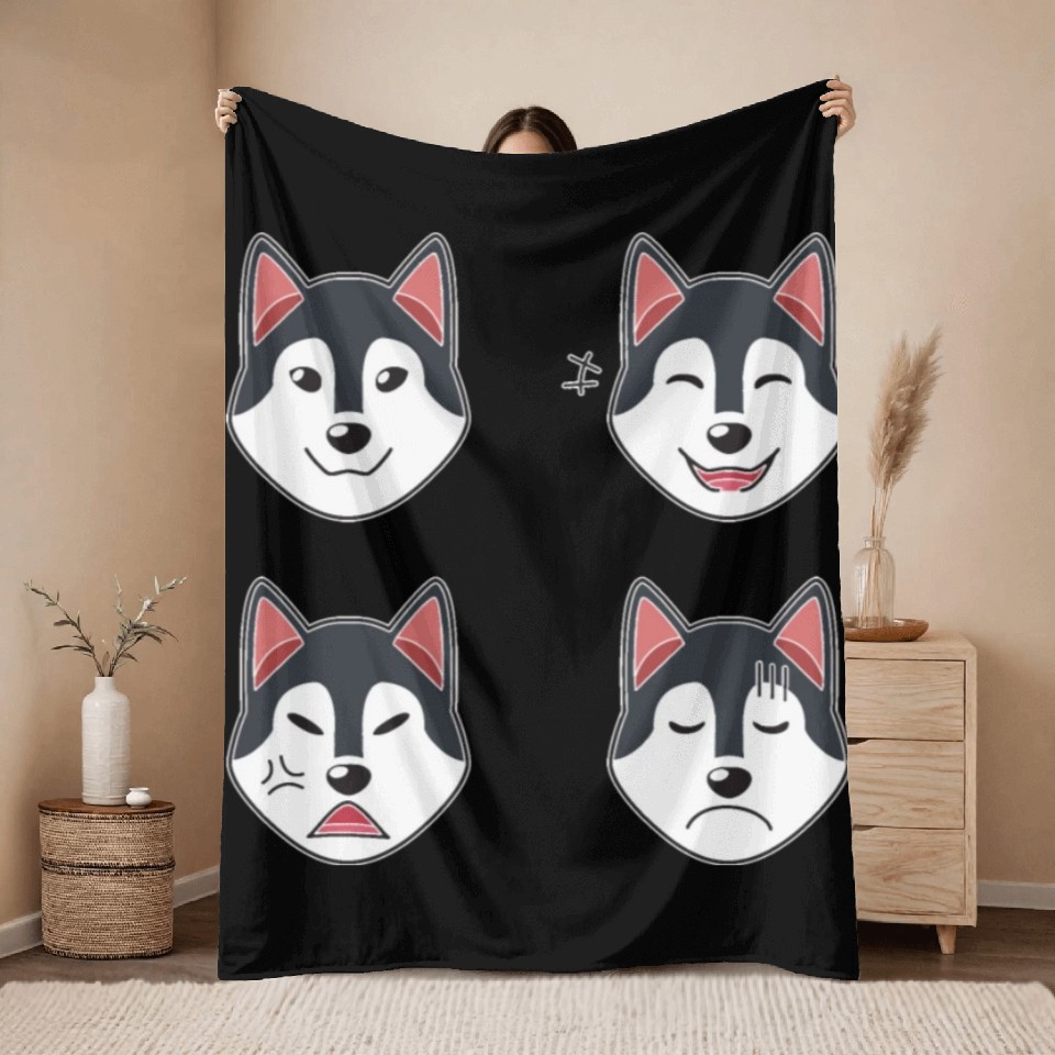 You are contemplating one of the best-selling products Funny Siberian Husky Dog Cartoon Faces Throw Blankets For Black belong theme Throw Blankets at Printblur