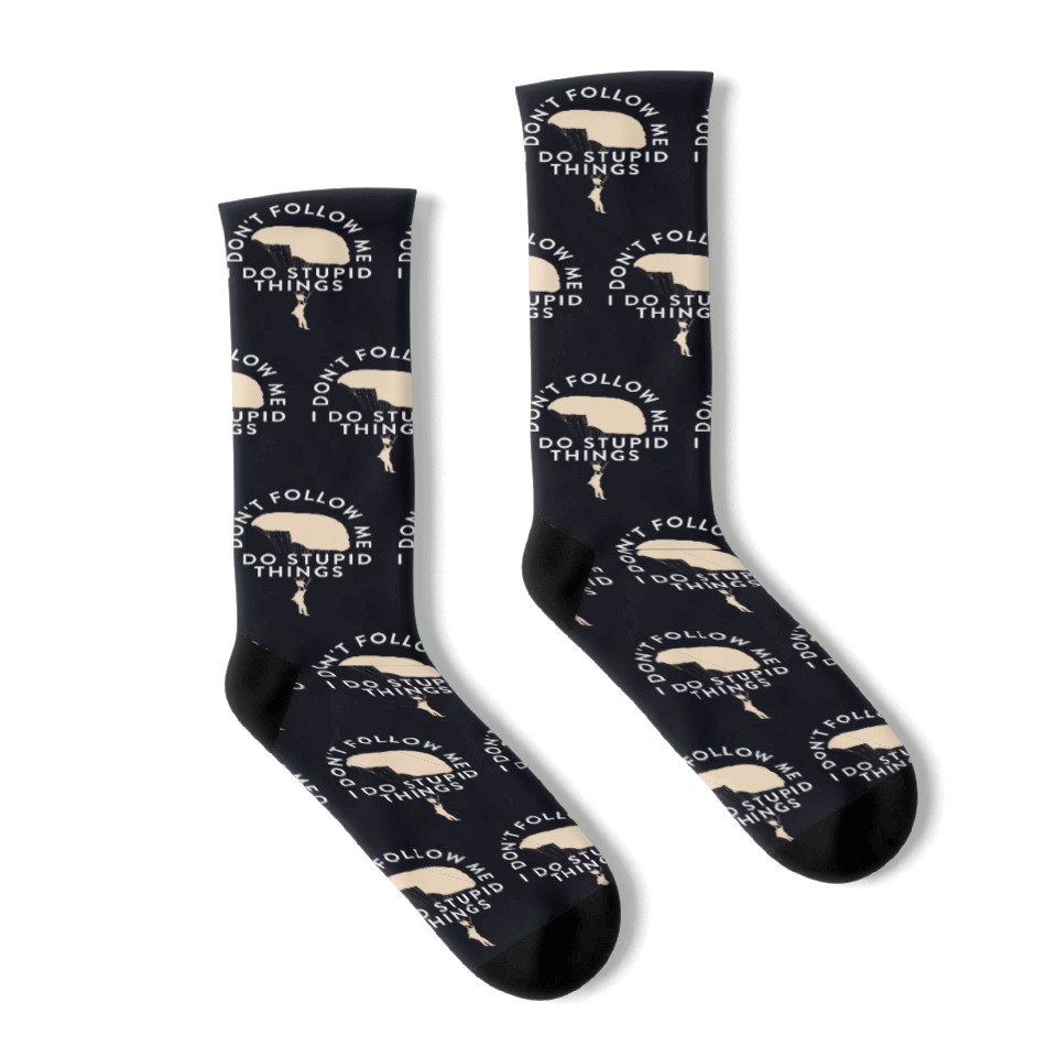 Own fascinating Funny Skydiving Don't Follow Me I Do Stupid Things Socks or see more Socks products now from Printblur shop to enjoy your shopping time!